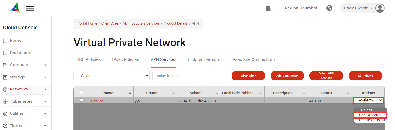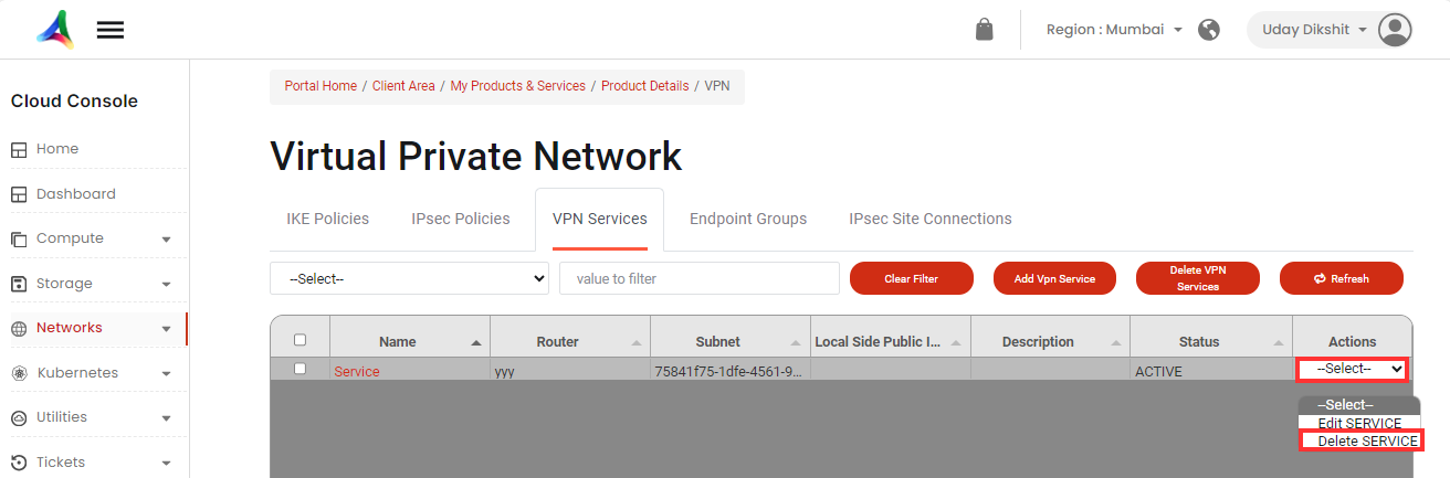 d. How do I delete a VPN service?
